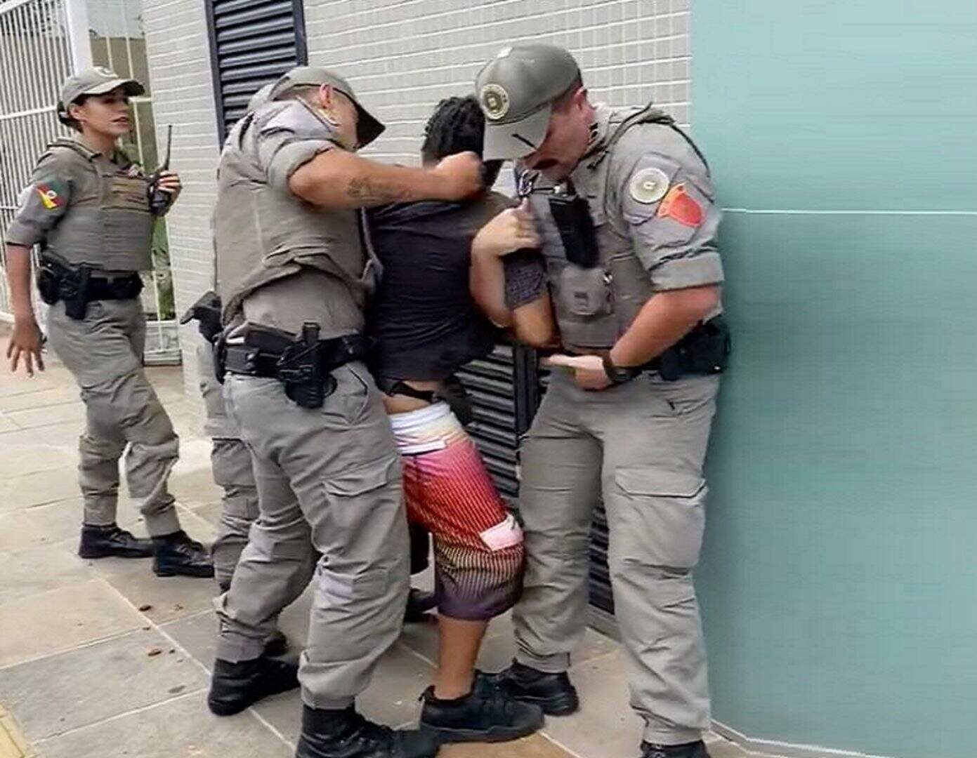 Em determinado momento, o motoboy diz que trabalha na região, mas é interrompido pelo agressor: “Não trabalha, nada!”. Ao tentar responder, o homem negro acaba agarrado pela camisa por um policial e pressionado contra um muro.