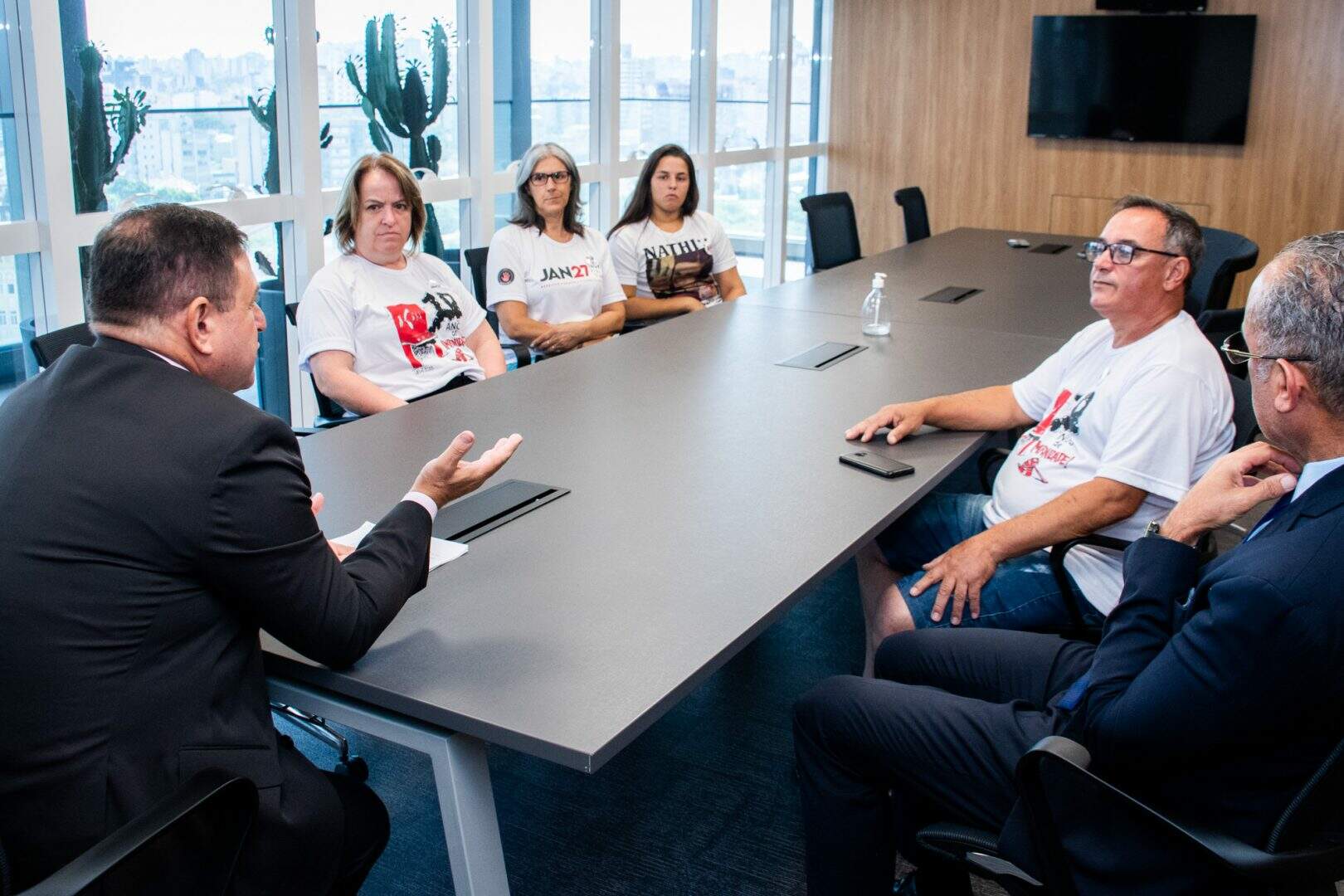 Cinco representantes da Associação dos Familiares de Vítimas e Sobreviventes da Tragédia de Santa Maria foram recebidos pelo 2º Vice-Presidente do TJRS, Desembargador Antonio Vinicius Amaro da Silveira, na manhã desta terça-feira, no prédio da Corte gaúcha.