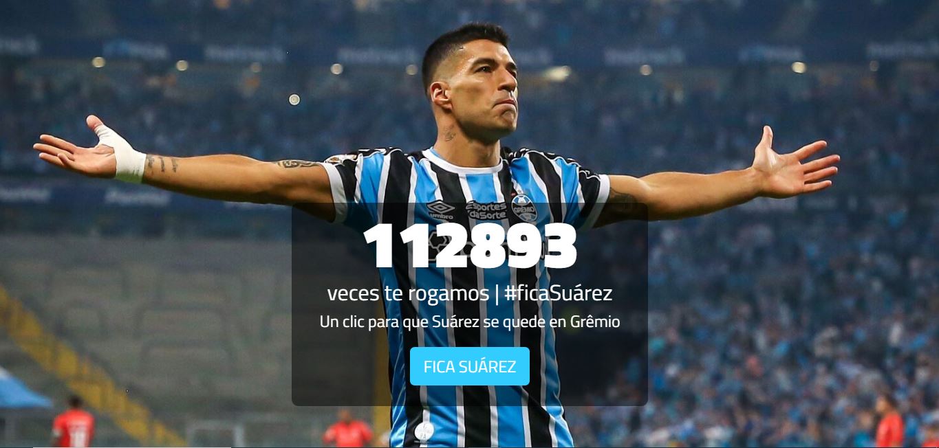Na esperança de contar com Luis Suárez no Grêmio, os torcedores do clube gaúcho criaram um site pedindo a permanência do centroavante para a próxima temporada. A página na internet se chama “Fica Suárez“. Uma informação movimentou a torcida gremista na terça-feira (31).