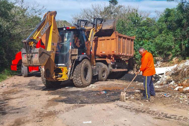 Catorze toneladas de resíduos descartados irregularmente foram recolhidas pelo DMLU (Departamento Municipal de Limpeza Urbana) no bairro Lomba do Pinheiro, na Zona Leste de Porto Alegre, no domingo (20).