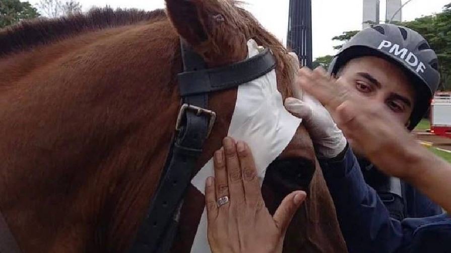 Levado por um agente até o gramado do Parque da Cidade, na região central de Brasília, o cavalo 847 pasta tranquilamente. Sacode a crina, dobra uma das patas, morde os tufos de grama. A seu lado, o policial militar o acaricia e aponta uma cicatriz seca que contorna seu olho direito.