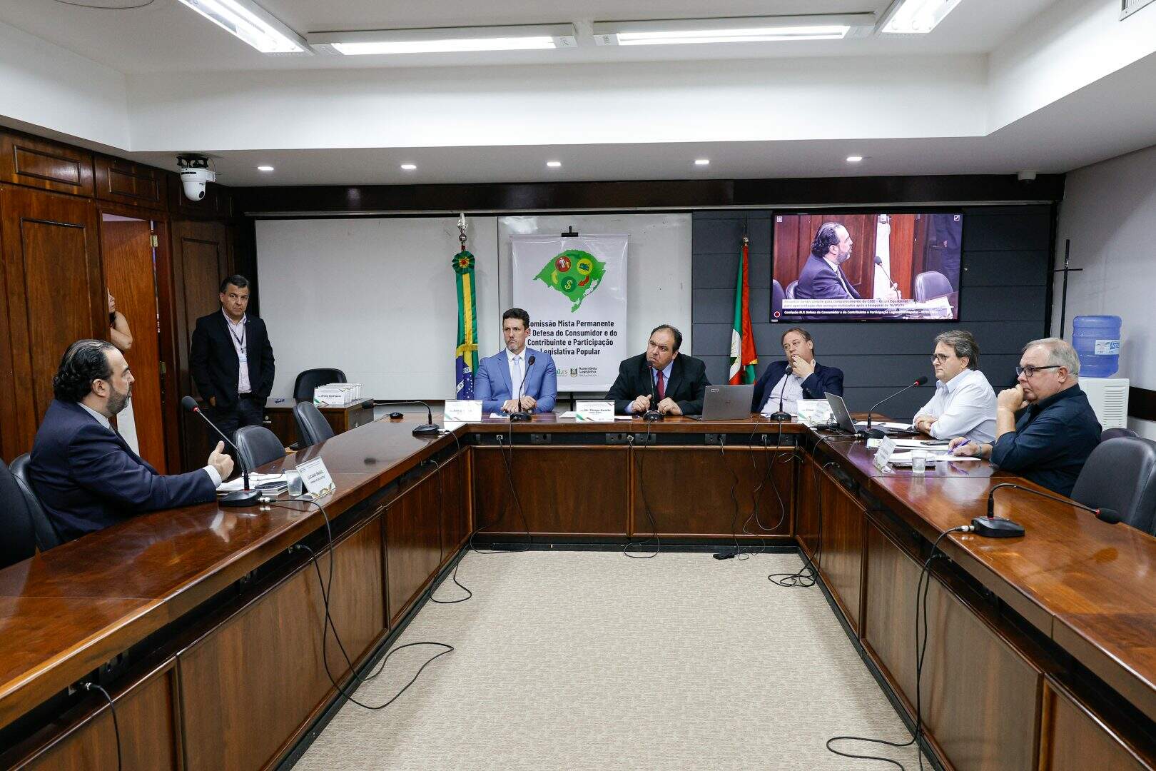 Em reunião com deputados estaduais da Comissão de Defesa do Consumidor e do Contribuinte na Assembleia Legislativa do Rio Grande do Sul, executivos da concessionária CEEE Equatorial prestaram informações sobre o atendimento aos clientes após o temporal de 16 de janeiro. O encontro foi coordenado pelo presidente do colegiado, Thiago Duarte (União Brasil).