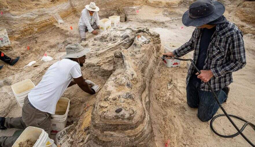 Foi só quando Dean Warner, professor de química aposentado e voluntário na escavação de Montbrook, encontrou um pé articulado de algo muito grande que as atenções se voltaram para o achado. “Comecei a encontrar um após o outro, os ossos do dedo do pé e do tornozelo. Conforme continuei a escavar, a ulna e o rádio começaram a aparecer também”, descreve o voluntário.