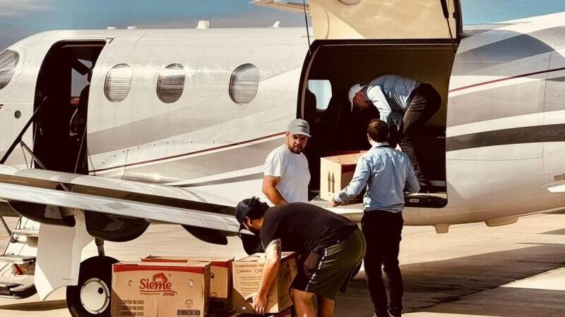 Ajuda vinda de outros Estados também desembarca no município. O estado de Goiás já enviou 230 toneladas de donativos. O carregamento continha água, cestas básicas, cobertores, materiais de limpeza, kit de higiene pessoal, remédios e ração animal.