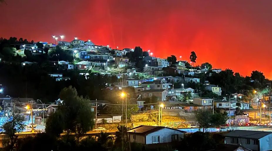 Desde a noite de sábado, as condições climáticas têm sido adversas para enfrentar os incêndios. Além das altas temperaturas, o fenômeno conhecido como “vento Puelche”, um vento seco e quente que sopra da Cordilheira dos Andes em direção aos vales e à costa, complicou o combate às chamas, pois aumenta a temperatura e reduz a umidade.