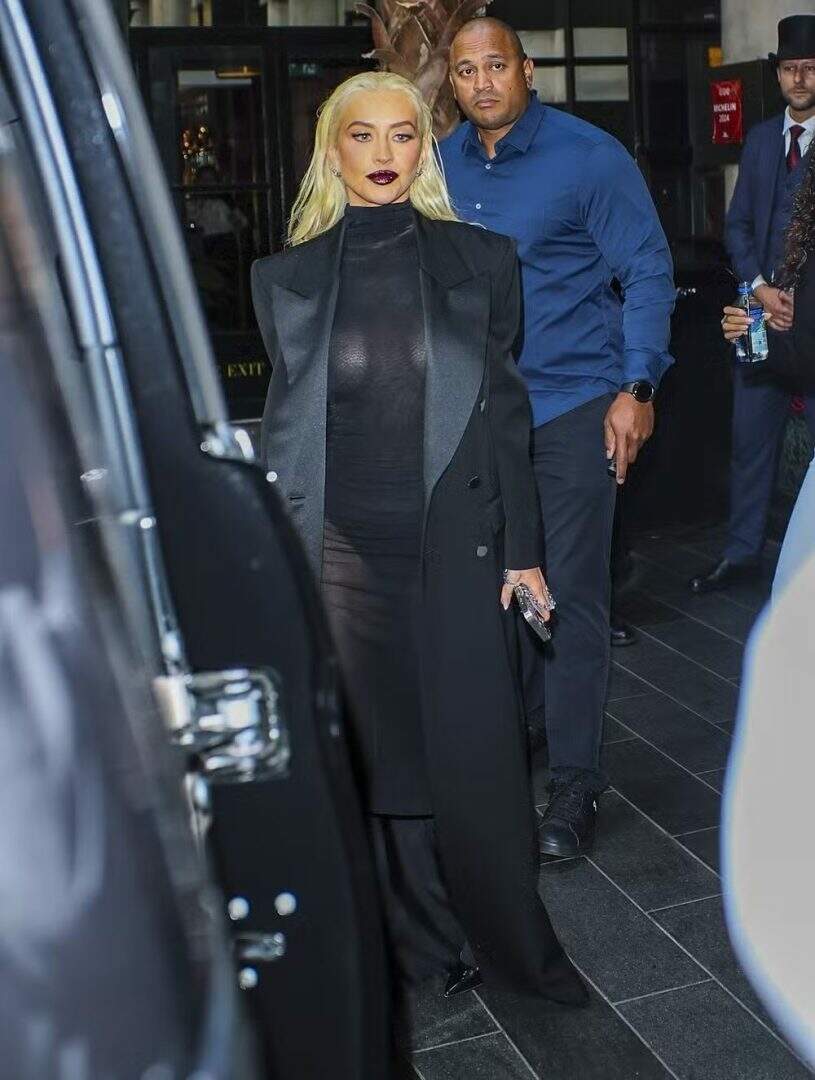 A cantora Christina Aguilera, de 44 anos de idade, apostou em um look arrasador, na noite dessa segunda-feira (21), ao deixar o hotel em que está hospedada em Londres, na Inglaterra, a caminho de um jantar. A musa pop ainda exibiu os cabelos loiríssimos e make carregada, dando o tom gótico à produção sensual.