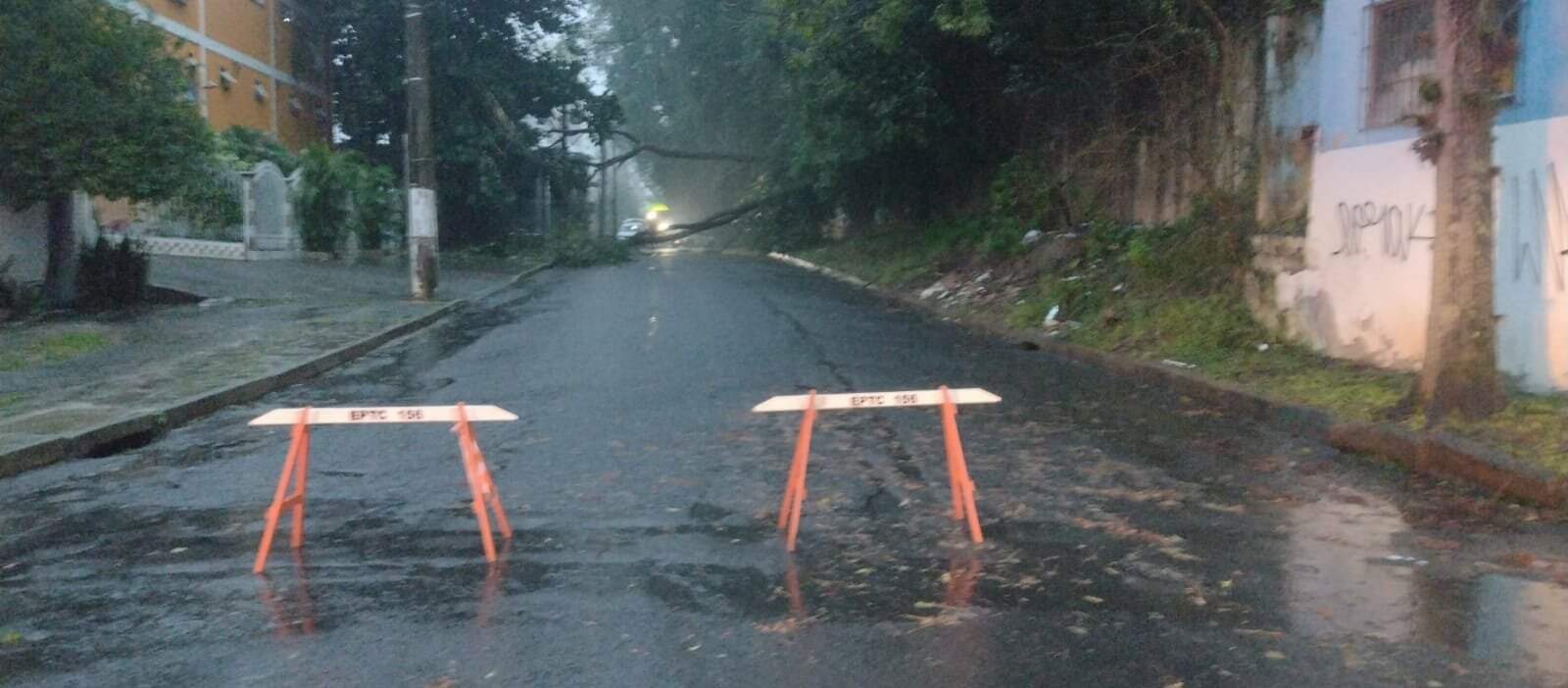 Uma árvore caiu na avenida Florianópolis, no bairro Azenha, na altura do número 279, provocando o bloqueio do trânsito. A rede elétrica foi atingida, e os moradores da região ficaram sem luz.