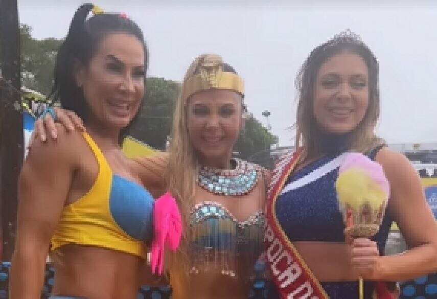 Já a ex-dançarina Carla Perez se vestiu com mais um figurino dos tempos da primeira de suas duas passagens pelo grupo que a revelou nacionalmente (1995-1998 e 2004-2005). Embalada pelo tema ”É O Tchan no Egito”, na segunda-feira ela animou a criançada no circuito Osmar.