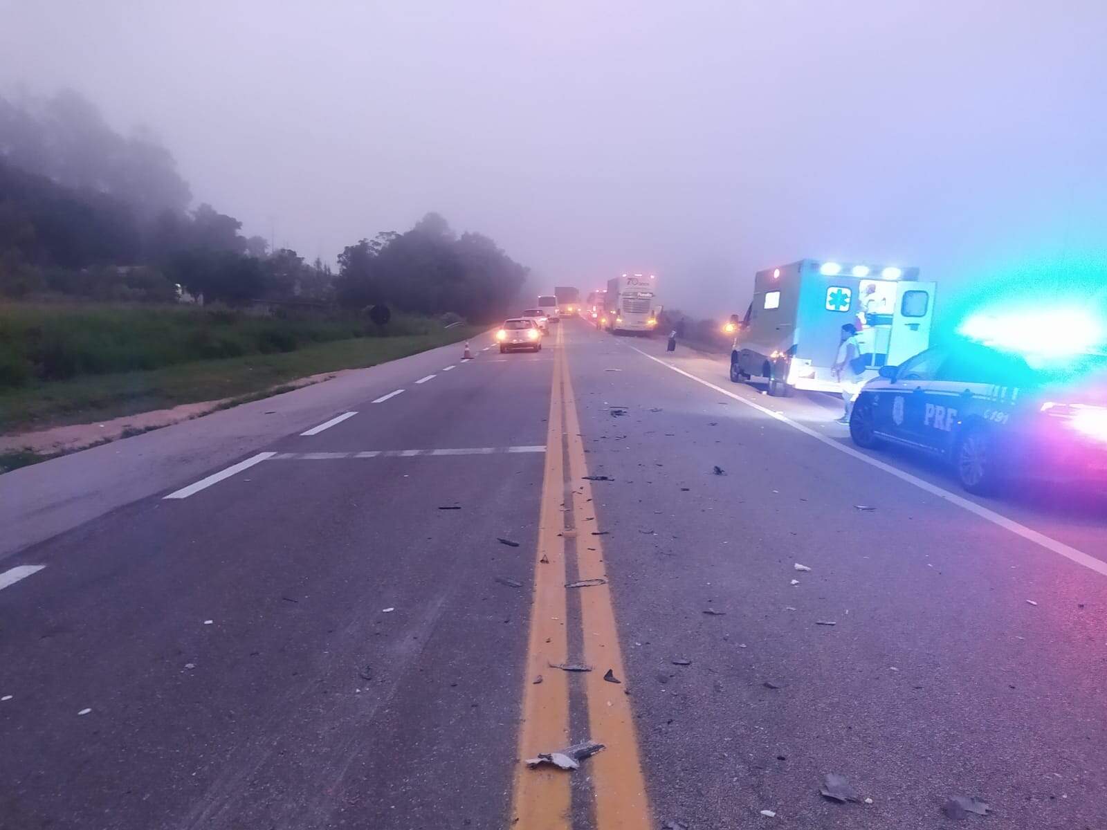 Um acidente ocorreu na madrugada deste sábado (11) no km 426, da BR 116, em Cristal, entre um ônibus e um caminhão.