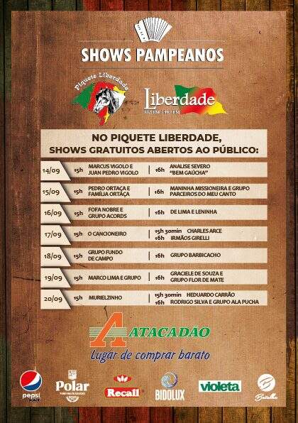 No piquete da emissora no Acampamento Farroupilha de Porto Alegre, localizado no Lote 13 do Setor A do Parque Harmonia, serão realizados os tradicionais Shows Pampeanos, com a participação de grandes artistas da música tradicionalista e entrada gratuita.