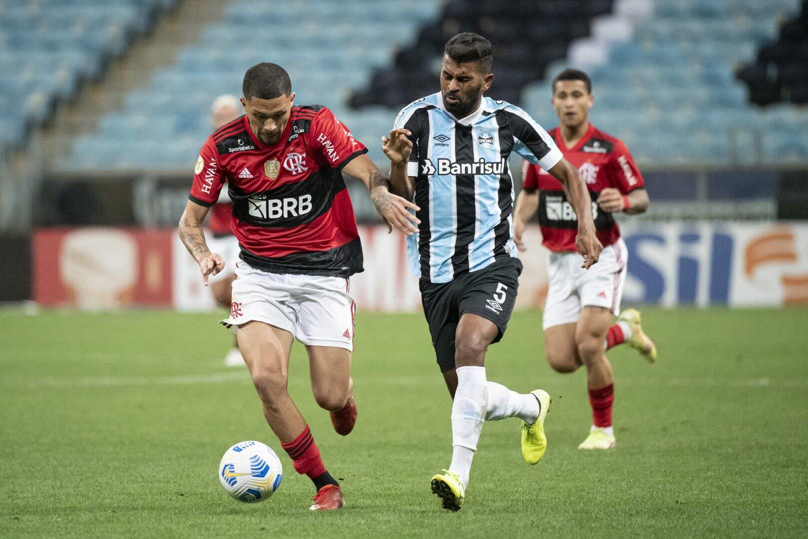 O Grêmio enfrentou o Flamengo, na noite desta terça (23), na Arena, em jogo adiado, válido pela 2ª rodada do Campeonato Brasileiro. Mesmo saindo atrás no marcador e com um jogador a menos em campo, o Tricolor não desistiu e conseguiu alcançar o empate em 2 a 2 com o time carioca. Com o resultado, o Grêmio soma um ponto, chegando a 36 na tabela da competição. O próximo desafio será diante do Bahia, na sexta-feira (26), às 19h.