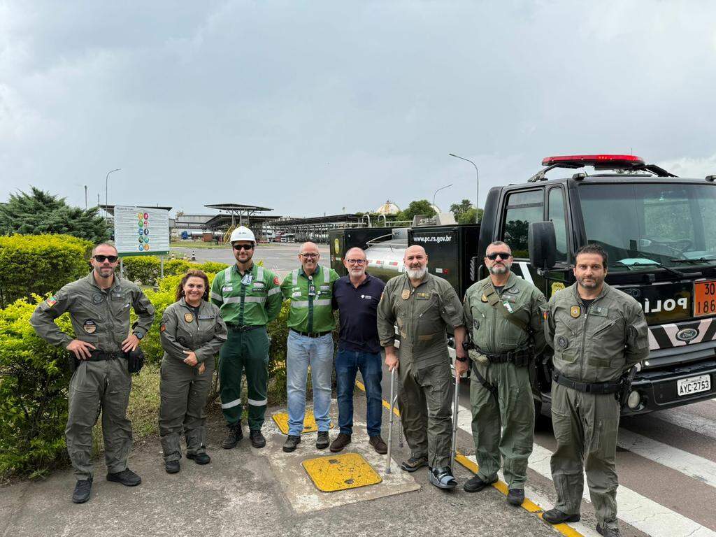 O primeiro abastecimento contou com representantes do MPRS, da Base Canoas da Vibra Energia e da Polícia Civil. Entre os presentes estavam o gerente da Base Canoas, Geraldo Marchesan Bellaguarda, o coordenador de Operações, Diego Alex Ortiz, os delegados Carlos Iglesias Júnior, diretor do Departamento de Aviação, e Patrícia Sanchotene Pacheco, além do comissário Dionel Gabana de Souza, o inspetor Tairone Vieira Chelminski e o escrivão Leandro Rodrigues Gomes.