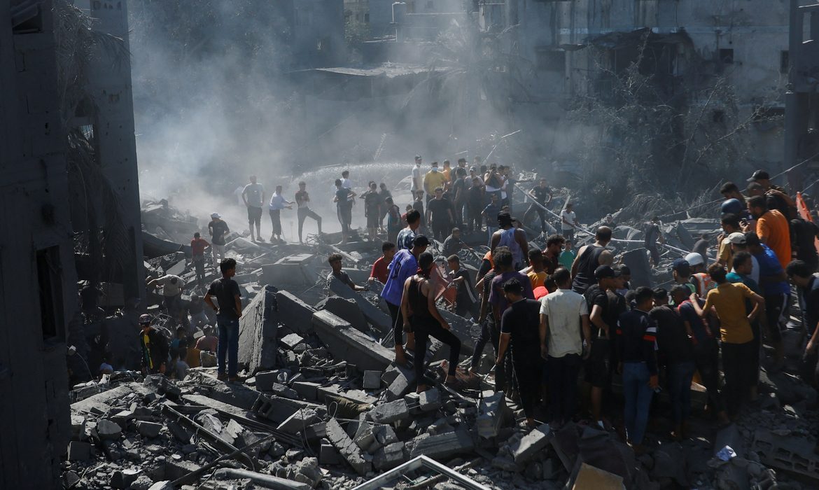 Os ataques aéreos israelenses têm atingido a cidade de Gaza desde o ataque do Hamas em 7 de outubro ao sul de Israel, no qual as autoridades israelenses disseram que pelo menos 1.400 israelenses foram mortos no dia mais mortal dos 75 anos de história do país.