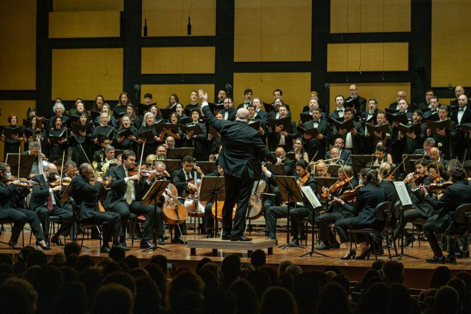 O concerto Ospa 75 Anos começa com “Raízes – Concerto para Quarteto de Percussão e Orquestra”, da carioca Clarice Assad. Dedicada ao grupo Martelo, a música é uma celebração da cultura e da comunidade brasileira em sua diversidade, apresentando sons vibrantes inspirados em diversas regiões e em referências do passado e presente.