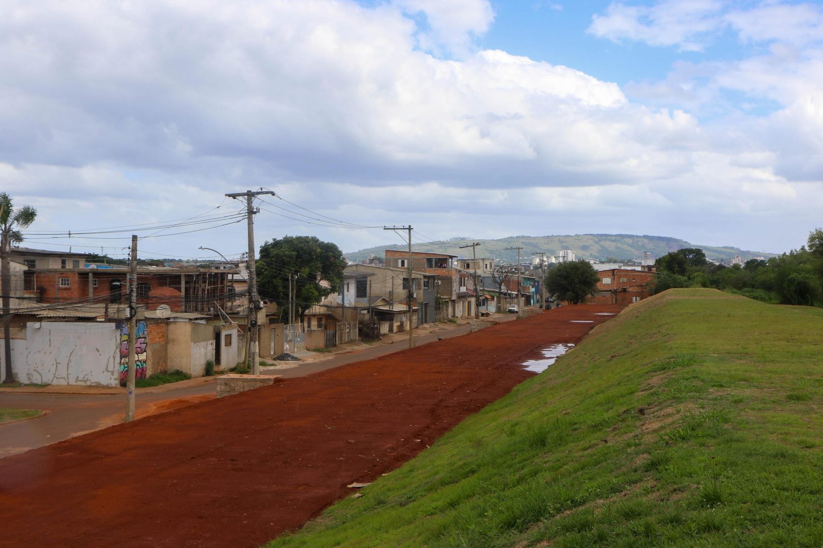 A obra de elevação do dique foi necessária para contenção de enchente em um dos bairros mais atingidos pela inundação de maio de 2024 na capital gaúcha. A água extravasou a contenção, alagando quase todas as moradias e provocou um impasse entre a prefeitura e moradores que precisam ser retirados para a continuidade da intervenção.