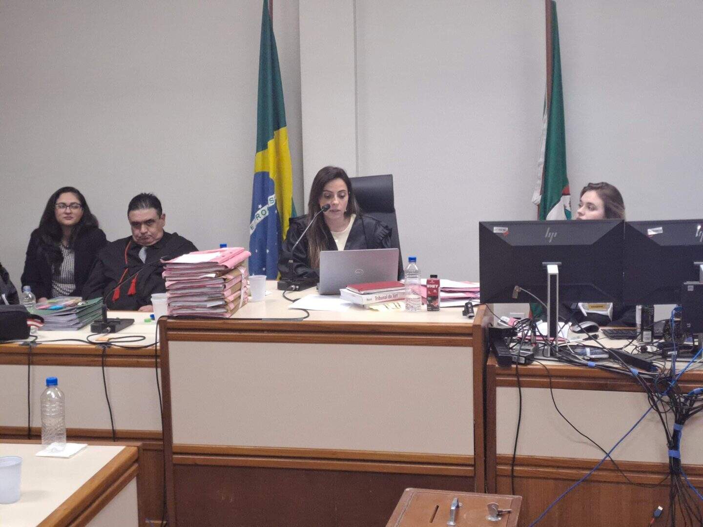 O julgamento, que começou na manhã de quinta (25), resultou na condenação de Rafael Trindade de Almeida, de 28 anos, pelo crime de homicídio tentado contra Francielle Wienke e a desclassificação dos crimes dolosos contra a vida contra Ronei Jr. , Ronei Wilson Faleiro – pai do adolescente morto – e Richard Saraiva de Almeida. O júri foi presidido pela juíza Flávia Paese Vaz Ribeiro Vanoni.