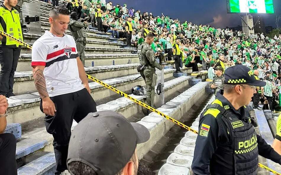 O empate sem gols entre Atlético Nacional, da Colômbia, e São Paulo, pela ida das oitavas de final da Copa Libertadores, ficou marcado por cenas lamentáveis fora das quatro linhas. No estádio Atanasio Girardot, em Medellín, parte da torcida colombiana invadiu o setor destinado aos são-paulinos e iniciou uma série de agressões, gerando pânico entre os presentes.