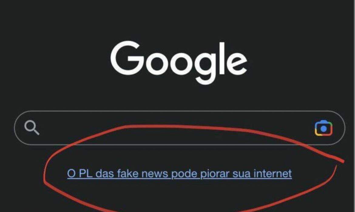Ao longo dos últimos dias, e até o início da tarde dessa terça, a página inicial do Google exibia a mensagem: “O PL das fake news pode aumentar a confusão sobre o que é verdade ou mentira no Brasil”.