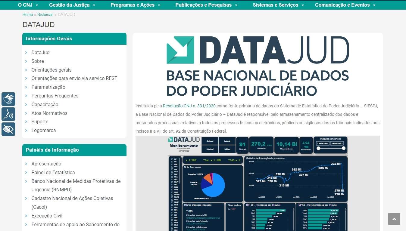 As informações são extraídas do DataJud, que foi criado em 2020 para concentrar em um único repositório, de modo automático, todas as estatísticas sobre a tramitação de processos nos tribunais.