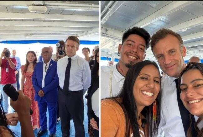 O encontro aconteceu na quinta-feira (6), durante a Caravana Fluvial Científica e Intercultural, de Manaus (AM) a Belém (PA), que reúne jovens ativistas, pesquisadores e instituições da França e do Brasil para cooperação científica e ambiental. “Foi uma conversa rápida, mas ele interagiu com a gente. Ele perguntou quais ações locais eu e os meninos faziam”, relatou Suellen.