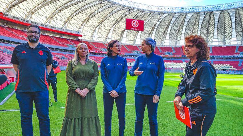 A Fifa (Federação Internacional de Futebol) realizou uma visita técnica neste domingo (11) no Beira-Rio, em Porto Alegre, para avaliar as condições do estádio e quantos jogos o local poderá receber na Copa do Mundo de Futebol Feminino de 2027.