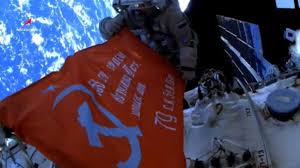 Os cosmonautas russos Oleg Artemeyev e Denis Matveyev exibiram uma réplica da Bandeira Soviética da Vitória, símbolo oficial do Exército de Moscou, na parte externa do módulo científico multiuso Nauka, informou a agência Tass nesta sexta-feira (29).