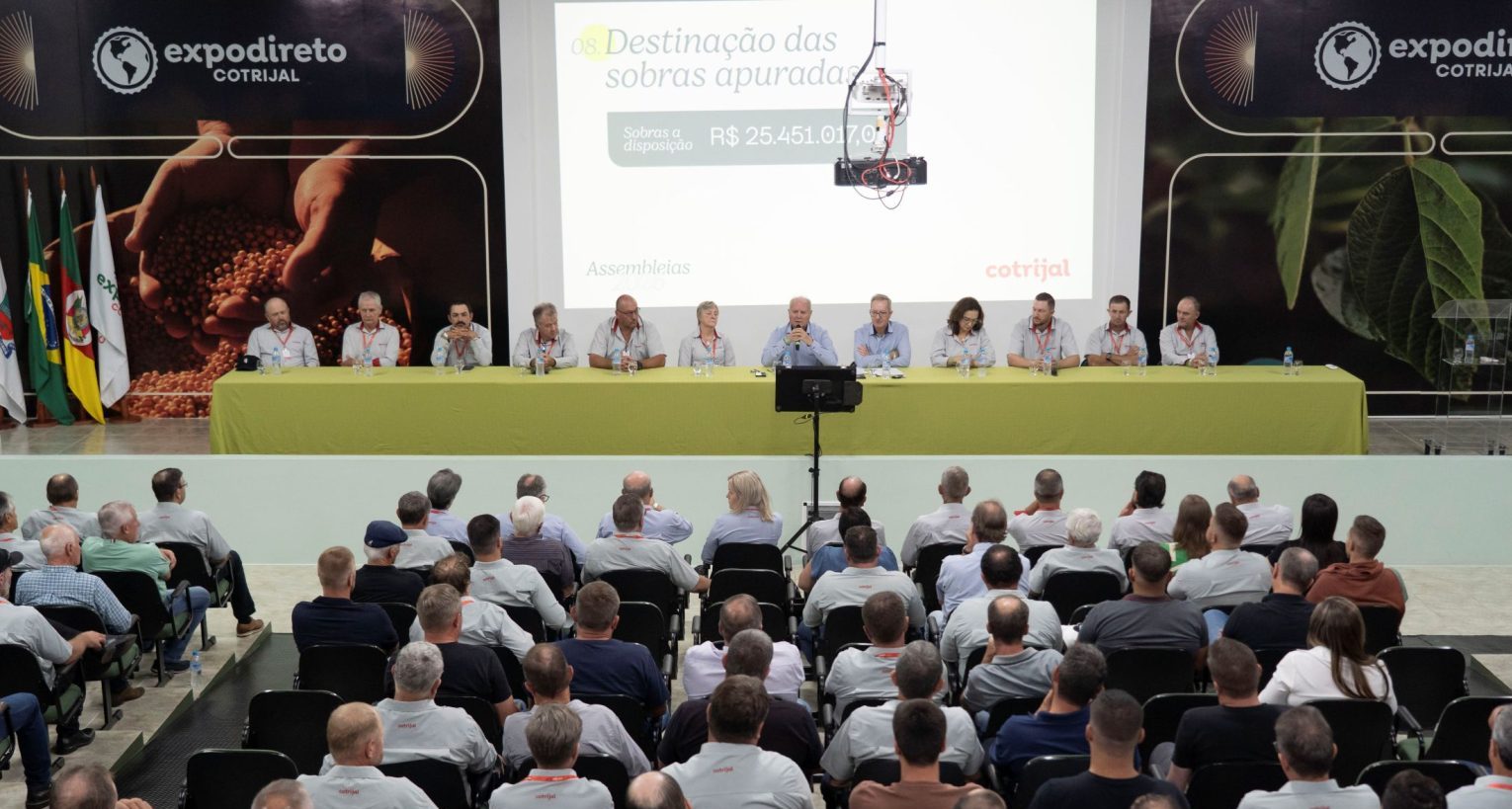 A Cotrijal vive um momento de reafirmação de sua força econômica e social. Na Assembleia Geral Ordinária (AGO) realizada no Parque da Expodireto, em Não-Me-Toque, os associados aprovaram a distribuição de R$ 25,4 milhões em sobras relativas ao exercício de 2025. O valor equivale a mais de 219 mil sacas de soja e será repassado diretamente ao quadro social, fortalecendo o vínculo entre cooperativa e associados em um ano marcado por desafios climáticos e de mercado.