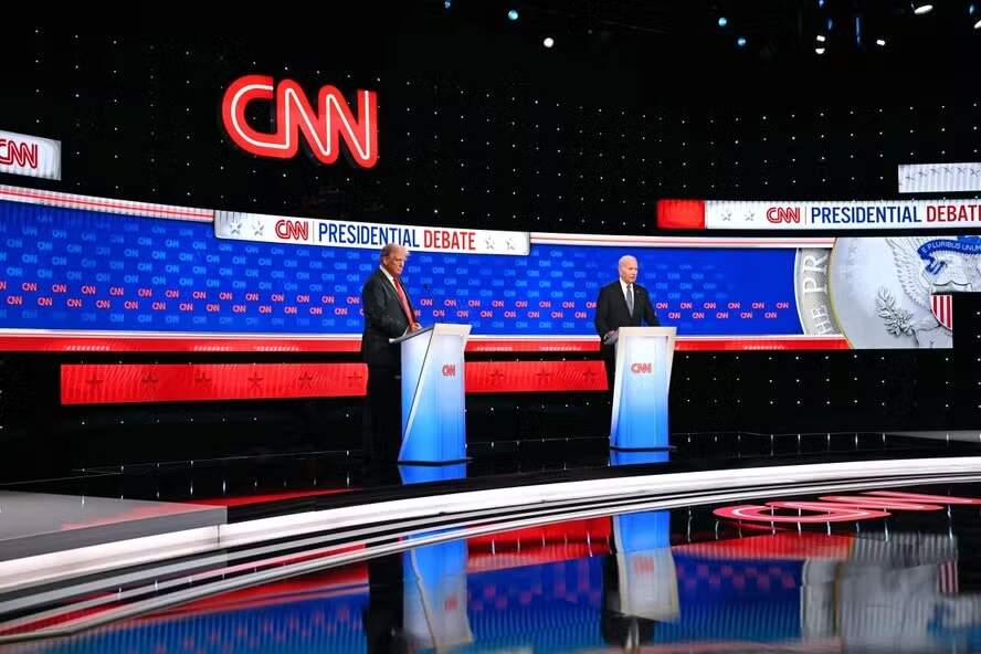 O primeiro debate eleitoral de 2024 entre o presidente dos Estados Unidos, Joe Biden, e o ex-presidente Donald Trump na noite de quinta-feira (27) terminou em uma série de ataques pessoais e troca de ofensas. Em um enfrentamento com uma série de ineditismos e que durou cerca de 1h40, os dois adversários se dedicaram a criticar os governos alheios, principalmente em pontos como imigração, guerra e economia – esta foi a primeira vez que um presidente e um ex-presidente ficaram cara a cara em um debate eleitoral nos EUA.