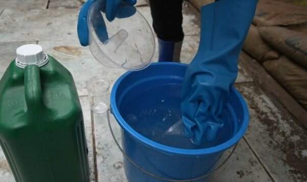 “Um balde de 20 litros para um copinho de água sanitária”.