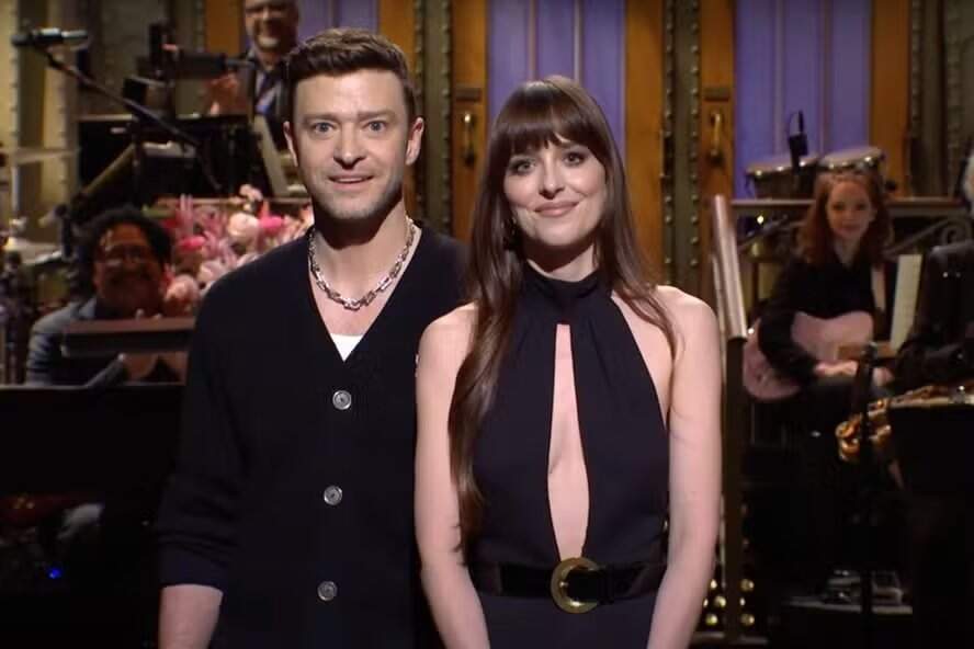 Dakota Johnson, atriz de 34 anos, revelou que sentia atração por Justin Timberlake, de 43 anos, enquanto filmavam o filme “A rede social”, de 2010.