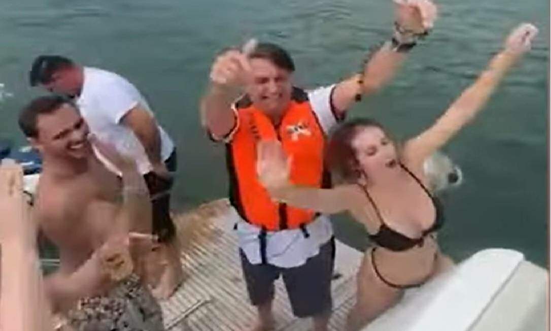 O presidente Jair Bolsonaro foi filmado dançando uma paródia do funk “Baile de Favela” em uma lancha, ao lado de apoiadores, em Guarujá, no litoral paulista, onde passa férias.