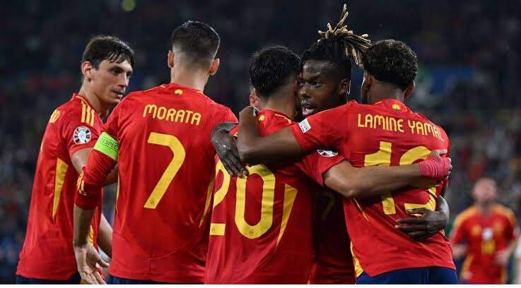 No confronto entre a melhor equipe da primeira fase da Eurocopa e a principal surpresa do torneio, a Espanha sofreu no primeiro tempo, mas deslanchou no segundo para vencer a Geórgia por 4 a 1, em Colônia, na Alemanha e avançou às quartas de final. A equipe do técnico Luis de la Fuente terá pela frente a dona da casa, na sexta-feira (5), às 13h (horário de Brasília), em Stuttgart.