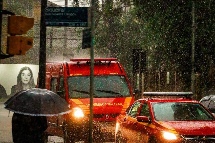 Nesta terça-feira (08), há chuva forte e persistente no Sul e no Litoral Médio, com volumes que podem chegar a 170 milímetros no extremo Sul, onde também devem ocorrer rajadas de vento de até 90 km/h, com mar agitado e ressaca forte (ondas de 2,5 metros a 3,0 metros). As mesmas condições meteorológicas do extremo Sul também estão previstas para as demais áreas do Litoral Sul.