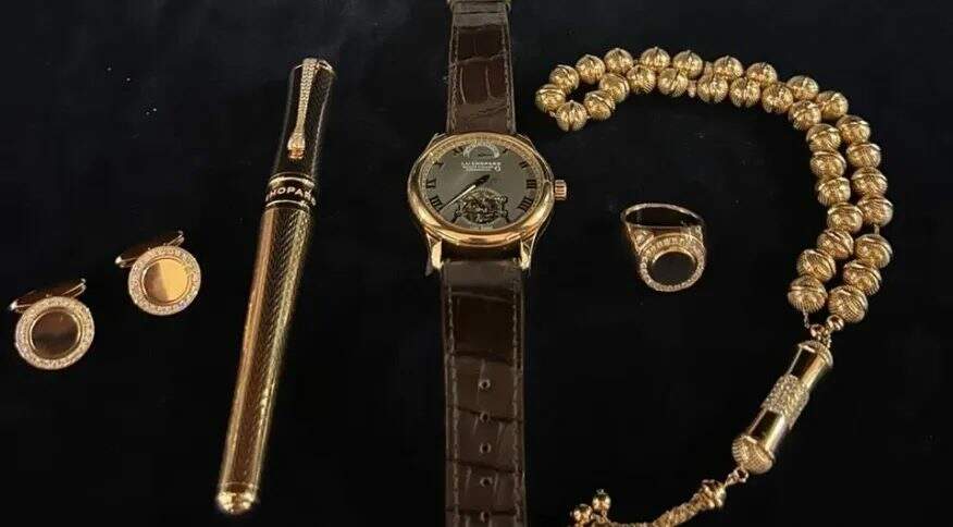 Os itens da marca suíça Chopard, avaliados em cerca de R$ 500 mil, incluem relógio, caneta, anel, abotoaduras e masbaha (um tipo de rosário).