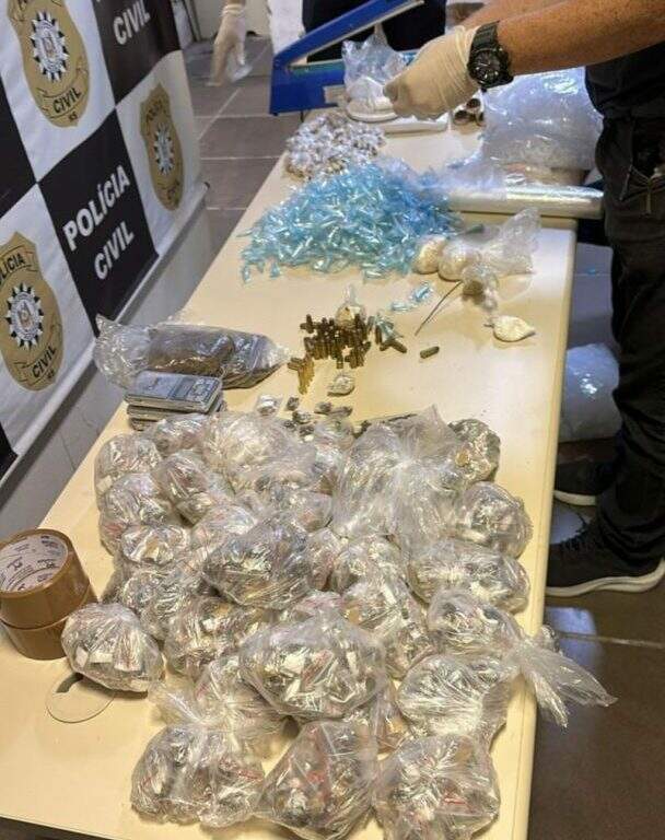 Além disso, foi localizado vasto material para embalar entorpecentes. Uma granada e munições também foram apreendidas.