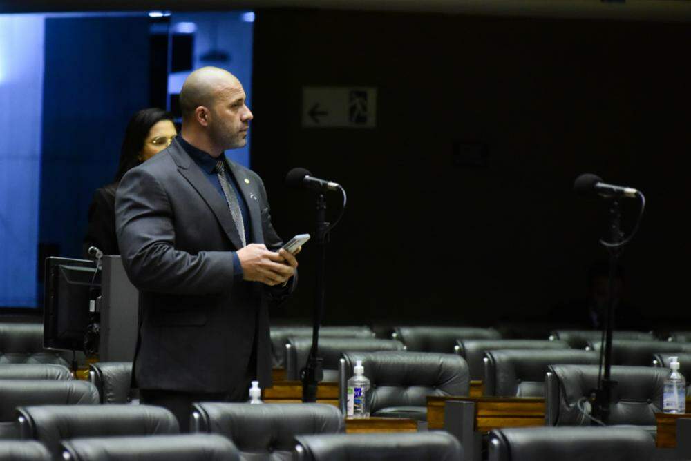 Mais cedo, policiais federais e civis estiveram na Câmara dos Deputados para cumprir a ordem judicial de colocação de tornozeleira eletrônica no deputado Daniel Silveira (PSL-RJ), mas ele se recusou a assinar o termo de cumprimento da medida.