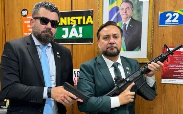O deputado federal Delegado Caveira (PL-PA) entrou armado com um fuzil e uma pistola em seu gabinete na Câmara dos Deputados, em Brasília (DF). Ele tirou fotos ao lado do vereador Zezinho Lima (PL), de Belém, que também estava com um armamento. As imagens circularam nas redes sociais e foram publicadas, nessa sexta-feira (2), pela coluna Radar, da revista Veja.