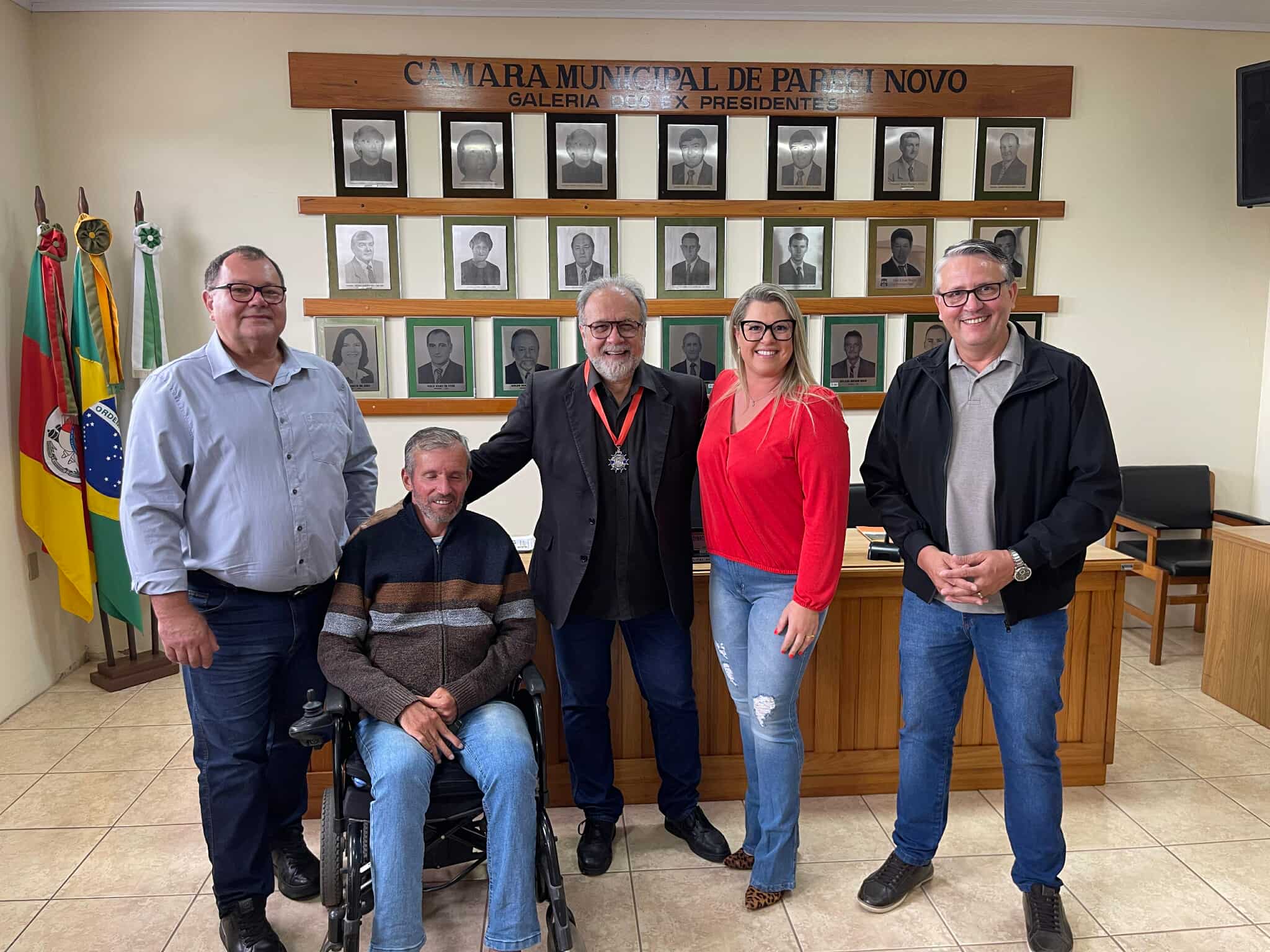 O deputado Gustavo Victorino recebeu na segunda-feira (9) a Comenda de Honra ao Mérito do Poder Legislativo Municipal de Pareci Novo, em cerimônia na sede da Câmara de Vereadores. A homenagem, proposta pelo presidente da Casa, vereador Antonio Gelcí de Mello, reconhece os relevantes serviços prestados pelo parlamentar ao município, ao Vale do Caí e ao Rio Grande do Sul.