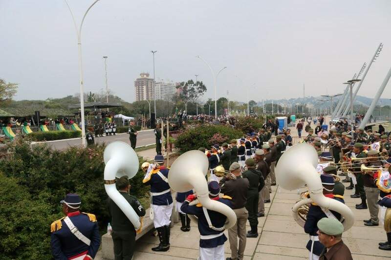 Entre os presentes estavam o Comandante Militar do Sul (CMS), general Hertz Pires do Nascimento, o vice-governador Gabriel Souza e o prefeito Sebastião Melo, que participaram da cerimônia de hasteamento das bandeiras do Rio Grande do Sul, do Brasil e de Porto Alegre, para abertura do desfile.