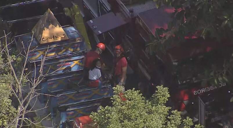 Crianças ficaram presas em um brinquedo, a seis metros de altura, no parque Cidade da Criança, em São Bernardo do Campo, na Grande São Paulo, na manhã desta quinta-feira (23).