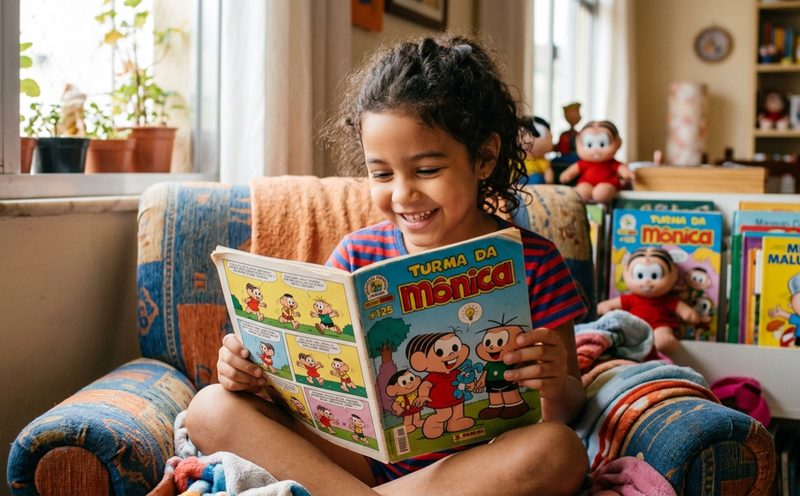 O ambiente familiar também tem papel fundamental nesse processo. A leitura compartilhada, por exemplo, fortalece vínculos e incentiva o interesse pelo universo literário. Pequenas atitudes, como reservar alguns minutos do dia para ler com a criança ou permitir que ela escolha os próprios livros ou gibis, como o dos famosos personagens da Turma da Mônica, ajudam a criar uma relação mais próxima com esse tipo de atividade.