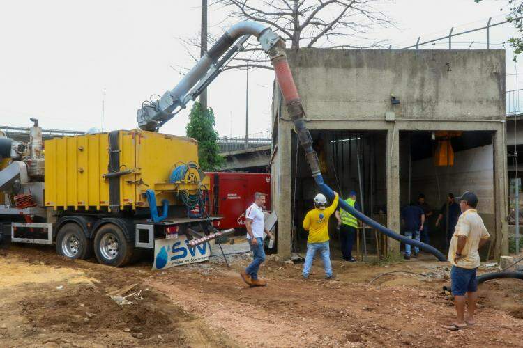 O Dmae (Departamento Municipal de Água e Esgotos) e a Trensurb atuam nesta quinta-feira (20), na limpeza do poço da casa de bombas da empresa federal, em Porto Alegre. A estação, localizada entre a rua Voluntários da Pátria e a avenida Sertório, recebe serviços de um caminhão supersugador, equipamento capaz de remover até 680m³ de resíduos por minuto.