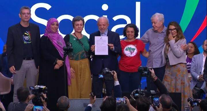 A declaração final da Cúpula Social do G20 foi finalizada neste sábado (16) e entregue ao presidente Luiz Inácio Lula da Silva. O documento reúne propostas da sociedade civil, discutidas ao longo do ano no âmbito da iniciativa. Os tópicos se dividem nos três eixos temáticos propostos pela presidência brasileira à frente do fórum: combate à fome, à pobreza e à desigualdade; sustentabilidade, mudanças do clima e transição justa; e reforma da governança global.