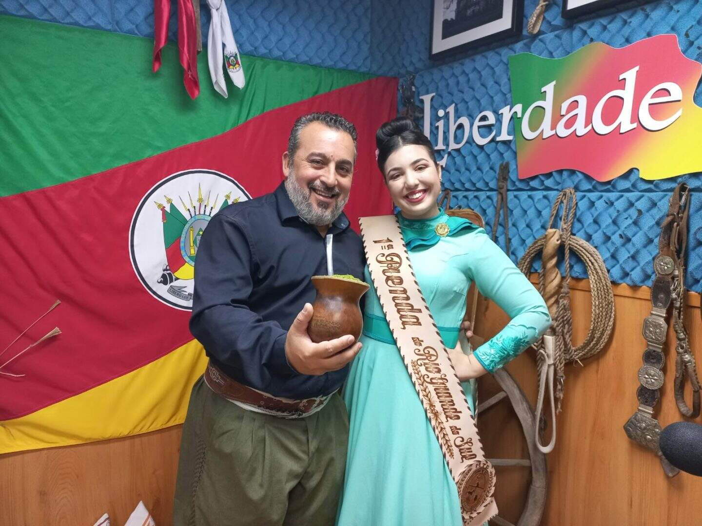 A prenda esteve presente no estúdio da Rádio Liberdade, da Rede Pampa de Comunicação, na manhã desta quarta-feira (31). Ela deu entrevista e posou ao lado do diretor e apresentador da Rádio Liberdade, Evandro Leboutte.