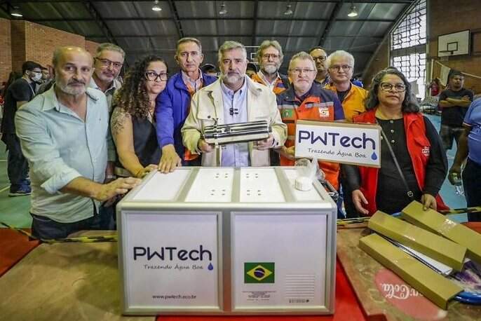 “É um compromisso do governo Lula para ajudar o povo nesse momento tão delicado”, segue Pimenta, antes de ingerir novamente a água do filtro.