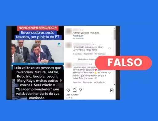 Esta publicação, especificamente, mostra um trecho da fala do deputado Reginaldo Lopes, com uma inscrição sobre a imagem: “Nanoempreendedor: Vendedores(as) de ‘Natura’ serão tributadas!”. O conteúdo foi usado em outra conta no Instagram, com um texto adicional. Além de afirmar que “Revendedoras serão taxadas por projeto do PT”, o texto diz que “Lula vai taxar pessoas que revendem” diversas marcas de cosméticos e que “vai abocanhar parte da sua comissão”.