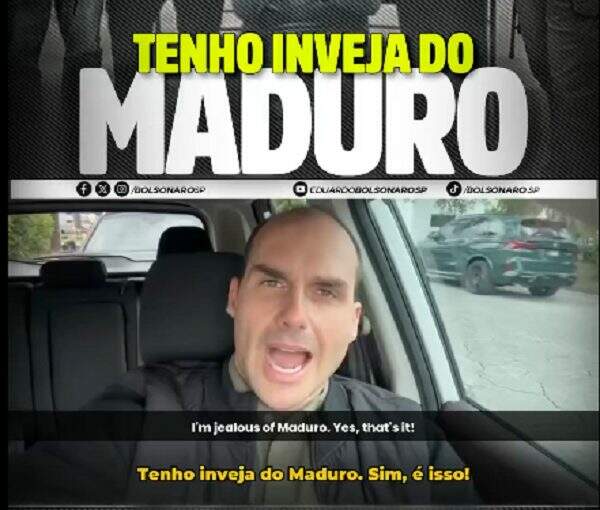 O deputado federal cassado Eduardo Bolsonaro (PL-RJ) comparou a prisão do seu pai, Jair Bolsonaro (PL), com a do ditador Nicolás Maduro, que está sob custódia do governo norte-americano em Nova York após os Estados Unidos invadirem a Venezuela no começo deste mês.
