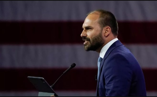 Autoexilado nos EUA desde março e apontado como responsável por incentivar as sanções econômicas aplicadas pelos EUA ao Brasil, Eduardo, filho Zero Três do ex-presidente, fez a manifestação pelas redes sociais. Ele escreveu um texto em inglês, no qual ironizou o fato de Moraes ter usado a vigília anunciada pelo senador Flávio Bolsonaro como argumento para mandar prender seu pai.