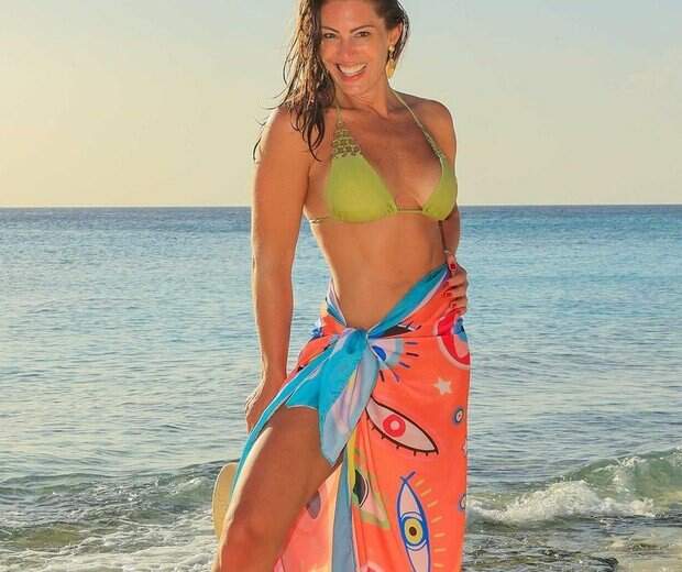 Elaine Mickely, de 41 anos de idade, se despediu de sua temporada na paradisíaca ilha Curaçao, no Caribe. Na tarde desta sexta-feira (12), ela postou mais fotos de biquíni diante do mar cristalino da região.