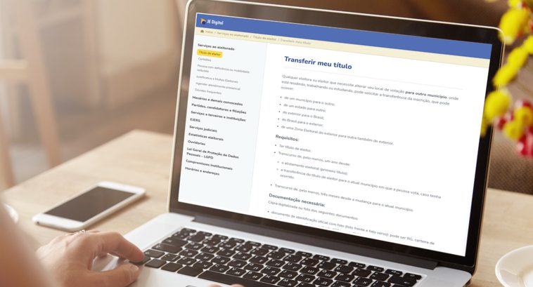Eleitores em situação regular com a Justiça Eleitoral podem fazer a solicitação pela internet. Para isso, basta acessar o site JE Digital, entrar na área de serviços ao eleitorado, selecionar a opção “Título de eleitor” e, em seguida, “Transferir meu título”.
